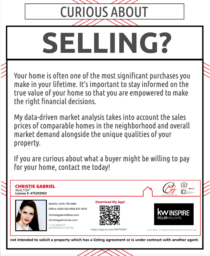 I struck real estate agent gold when I decided to team up with Christie Gabriel from Keller Williams Inspire in Algonquin. The home seller education she provided positioned me well to achieve the best possible outcome for the sale of my home.